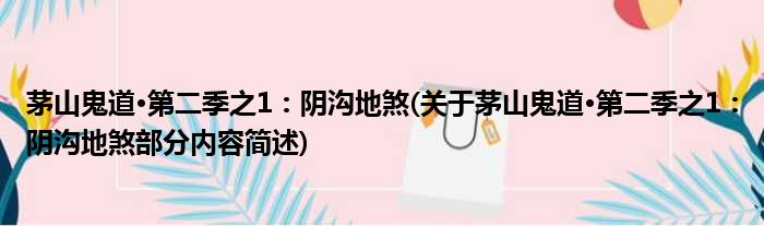 茅山鬼道·第二季之1:阴沟地煞(关于茅山鬼道·第二季之1:阴沟地煞部分内容简述)