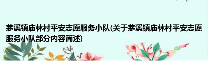 茅溪镇庙林村平安志愿服务小队(关于茅溪镇庙林村平安志愿服务小队部分内容简述)