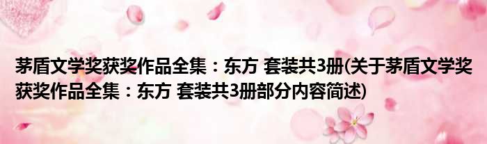 导读 大家好,今天小方来说说一篇关于茅盾文学奖获奖作品全集:东方 套装共3册,关于茅盾文学奖获奖作品全集:东方 套装共3册部分内容简述的文