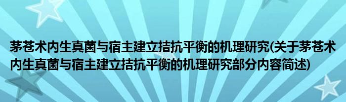 茅苍术内生真菌与宿主建立拮抗平衡的机理研究(关于茅苍术内生真菌与宿主建立拮抗平衡的机理研究部分内容简述)