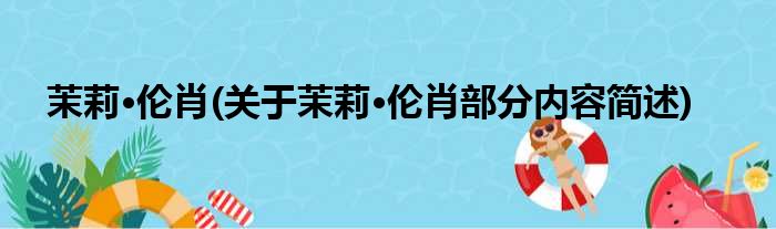 导读 大家好,今天小方来说说一篇关于茉莉·伦肖,关于茉莉·伦肖部分内容简述的文章,那么现在就为大家来简单介绍下,希望对各位小伙伴们有所帮
