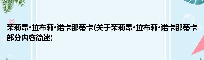 导读 大家好,今天小方来说说一篇关于茉莉昂·拉布莉·诺卡那蒂卡,关于茉莉昂·拉布莉·诺卡那蒂卡部分内容简述的文章,那么现在就为大家来简单