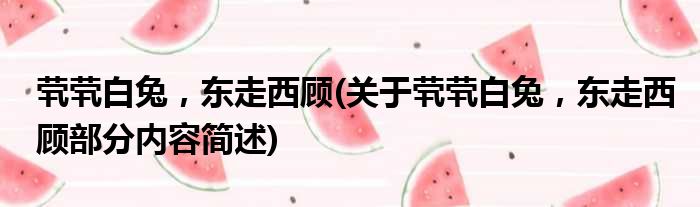 茕茕白兔,东走西顾(关于茕茕白兔,东走西顾部分内容简述)
