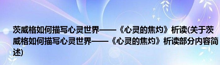 茨威格如何描写心灵世界——《心灵的焦灼》析读(关于茨威格如何描写心灵世界——《心灵的焦灼》析读部分内容简述)