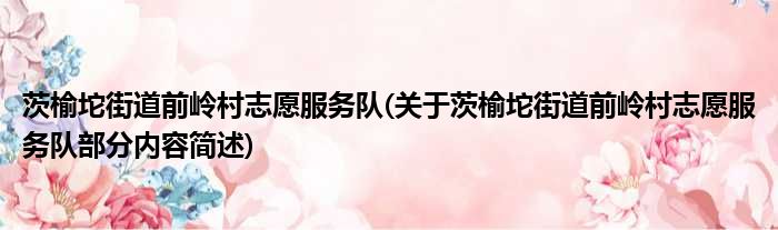 茨榆坨街道前岭村志愿服务队(关于茨榆坨街道前岭村志愿服务队部分内容简述)