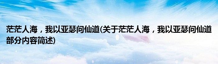 茫茫人海,我以亚瑟问仙道(关于茫茫人海,我以亚瑟问仙道部分内容简述)