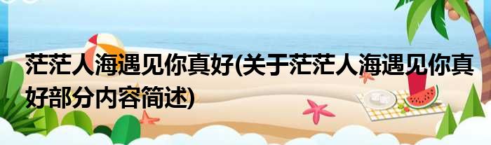 茫茫人海遇见你真好(关于茫茫人海遇见你真好部分内容简述)