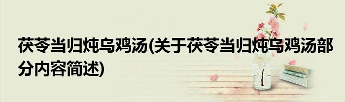 茯苓当归炖乌鸡汤(关于茯苓当归炖乌鸡汤部分内容简述)