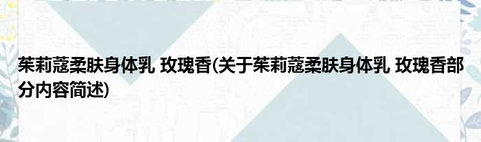 茱莉蔻柔肤身体乳 玫瑰香(关于茱莉蔻柔肤身体乳 玫瑰香部分内容简述)