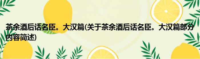 茶余酒后话名臣。大汉篇(关于茶余酒后话名臣。大汉篇部分内容简述)