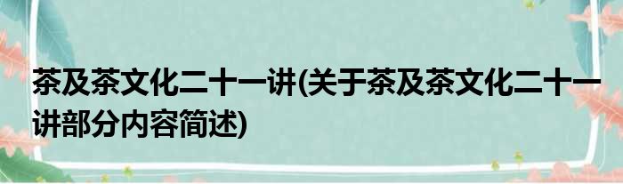 茶及茶文化二十一讲(关于茶及茶文化二十一讲部分内容简述)