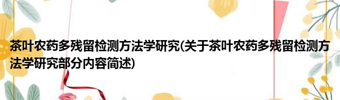 茶叶农药多残留检测方法学研究(关于茶叶农药多残留检测方法学研究部分内容简述)