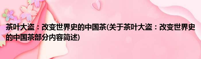 茶叶大盗:改变世界史的中国茶(关于茶叶大盗:改变世界史的中国茶部分内容简述)