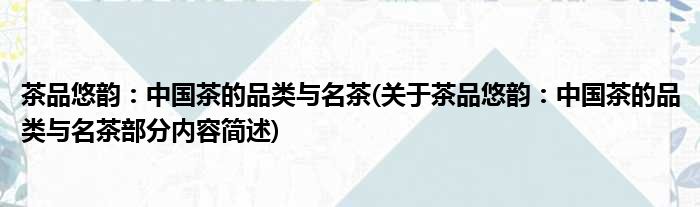 茶品悠韵:中国茶的品类与名茶(关于茶品悠韵:中国茶的品类与名茶部分内容简述)