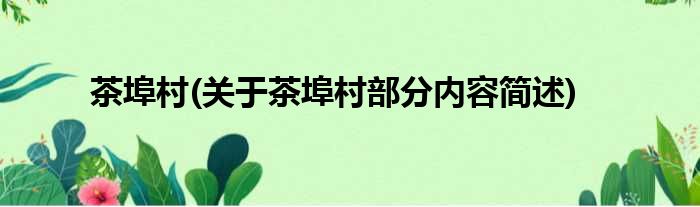 导读 大家好,今天小方来说说一篇关于茶埠村,关于茶埠村部分内容简述的文章,那么现在就为大家来简单介绍下,希望对各位小伙伴们有所帮助。