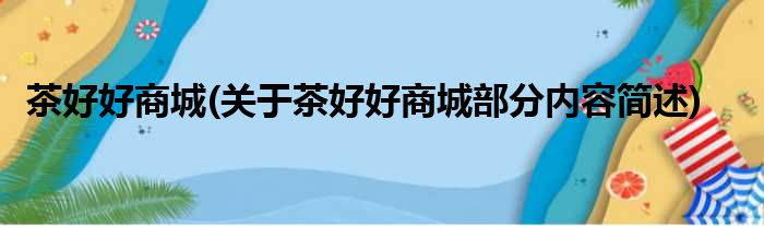 导读 大家好,今天小方来说说一篇关于茶好好商城,关于茶好好商城部分内容简述的文章,那么现在就为大家来简单介绍下,希望对各位小伙伴们有所帮