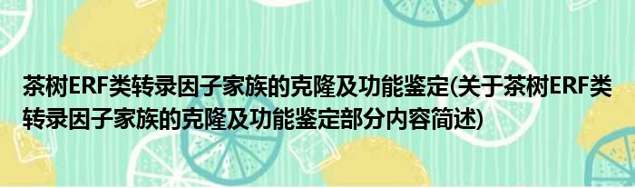 茶树ERF类转录因子家族的克隆及功能鉴定(关于茶树ERF类转录因子家族的克隆及功能鉴定部分内容简述)