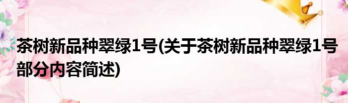 茶树新品种翠绿1号(关于茶树新品种翠绿1号部分内容简述)
