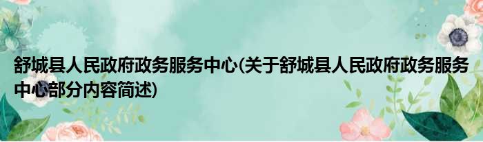 舒城县人民政府政务服务中心(关于舒城县人民政府政务服务中心部分内容简述)
