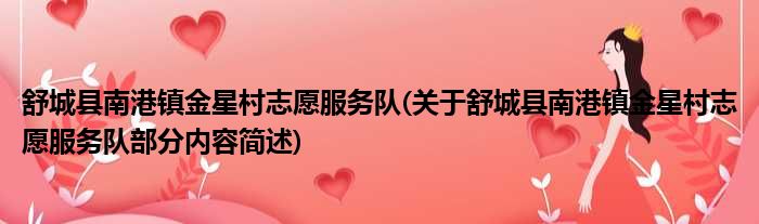 舒城县南港镇金星村志愿服务队(关于舒城县南港镇金星村志愿服务队部分内容简述)