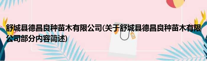 舒城县德昌良种苗木有限公司(关于舒城县德昌良种苗木有限公司部分内容简述)