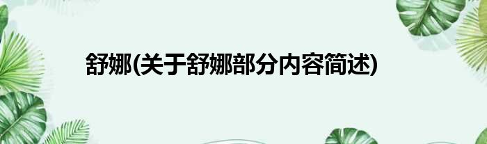 导读 大家好,今天小方来说说一篇关于舒娜,关于舒娜部分内容简述的文章,那么现在就为大家来简单介绍下,希望对各位小伙伴们有所帮助。