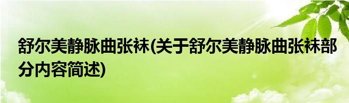 舒尔美静脉曲张袜(关于舒尔美静脉曲张袜部分内容简述)