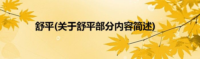 导读 大家好,今天小方来说说一篇关于舒平,关于舒平部分内容简述的文章,那么现在就为大家来简单介绍下,希望对各位小伙伴们有所帮助。