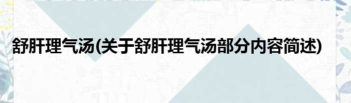 舒肝理气汤(关于舒肝理气汤部分内容简述)