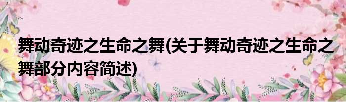 舞动奇迹之生命之舞(关于舞动奇迹之生命之舞部分内容简述)