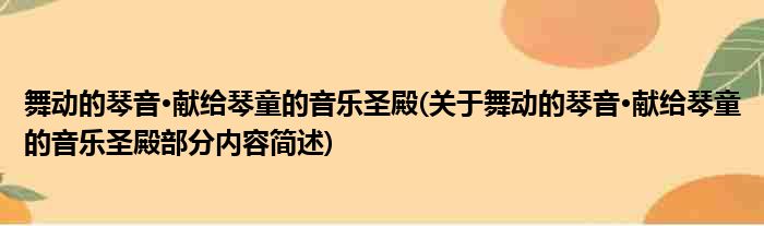 舞动的琴音·献给琴童的音乐圣殿(关于舞动的琴音·献给琴童的音乐圣殿部分内容简述)