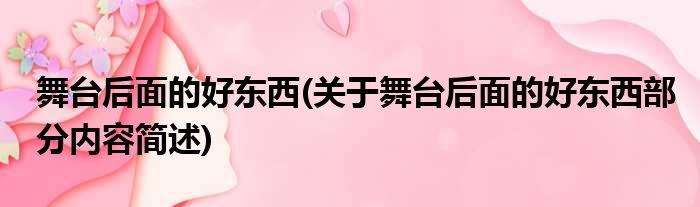 舞台后面的好东西(关于舞台后面的好东西部分内容简述)