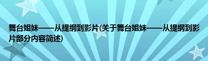 舞台姐妹——从提纲到影片(关于舞台姐妹——从提纲到影片部分内容简述)