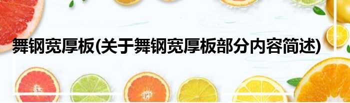 舞钢宽厚板(关于舞钢宽厚板部分内容简述)