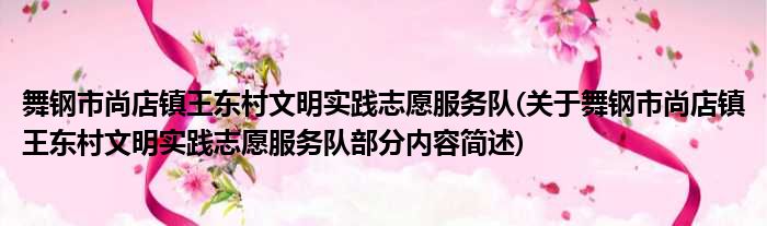 舞钢市尚店镇王东村文明实践志愿服务队(关于舞钢市尚店镇王东村文明实践志愿服务队部分内容简述)