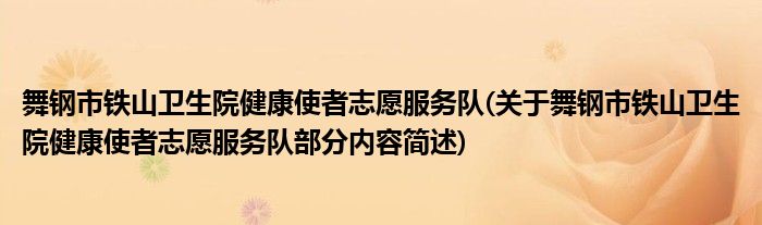舞钢市铁山卫生院健康使者志愿服务队(关于舞钢市铁山卫生院健康使者志愿服务队部分内容简述)