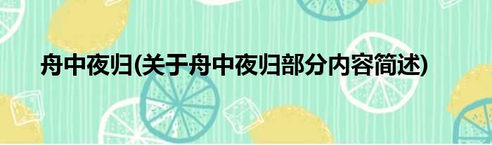 大家好,今天小方来说说一篇关于舟中夜归,关于舟中夜归部分内容简述的文章,那么现在就为大家来简单介绍下,希望对各位小伙伴们有所帮助。