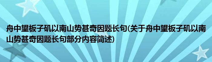 舟中望板子矶以南山势甚奇因题长句(关于舟中望板子矶以南山势甚奇因题长句部分内容简述)