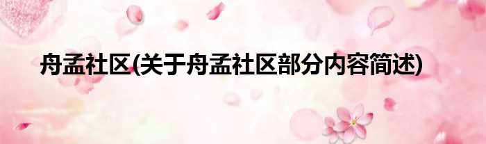 大家好,今天小方来说说一篇关于舟孟社区,关于舟孟社区部分内容简述的文章,那么现在就为大家来简单介绍下,希望对各位小伙伴们有所帮助。