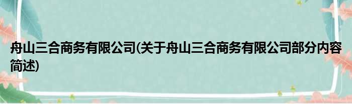 舟山三合商务有限公司(关于舟山三合商务有限公司部分内容简述)