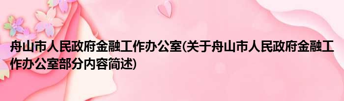 舟山市人民政府金融工作办公室(关于舟山市人民政府金融工作办公室部分内容简述)