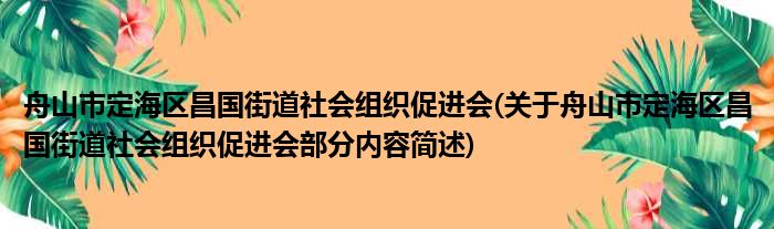 舟山市定海区昌国街道社会组织促进会(关于舟山市定海区昌国街道社会组织促进会部分内容简述)