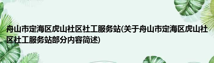 舟山市定海区虎山社区社工服务站(关于舟山市定海区虎山社区社工服务站部分内容简述)