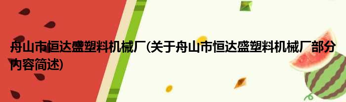 舟山市恒达盛塑料机械厂(关于舟山市恒达盛塑料机械厂部分内容简述)