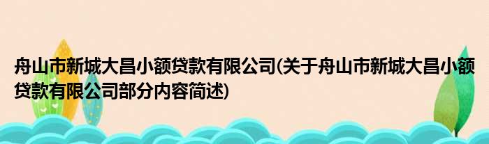 舟山市新城大昌小额贷款有限公司(关于舟山市新城大昌小额贷款有限公司部分内容简述)