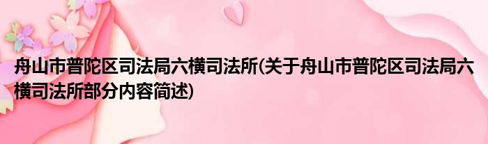 舟山市普陀区司法局六横司法所(关于舟山市普陀区司法局六横司法所部分内容简述)
