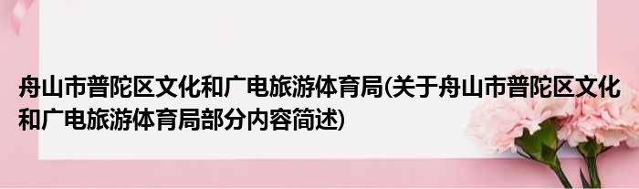 舟山市普陀区文化和广电旅游体育局(关于舟山市普陀区文化和广电旅游体育局部分内容简述)