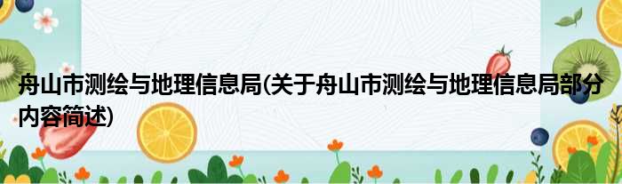 舟山市测绘与地理信息局(关于舟山市测绘与地理信息局部分内容简述)
