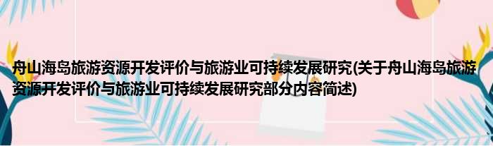 舟山海岛旅游资源开发评价与旅游业可持续发展研究(关于舟山海岛旅游资源开发评价与旅游业可持续发展研究部分内容简述)