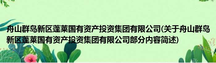 舟山群岛新区蓬莱国有资产投资集团有限公司(关于舟山群岛新区蓬莱国有资产投资集团有限公司部分内容简述)